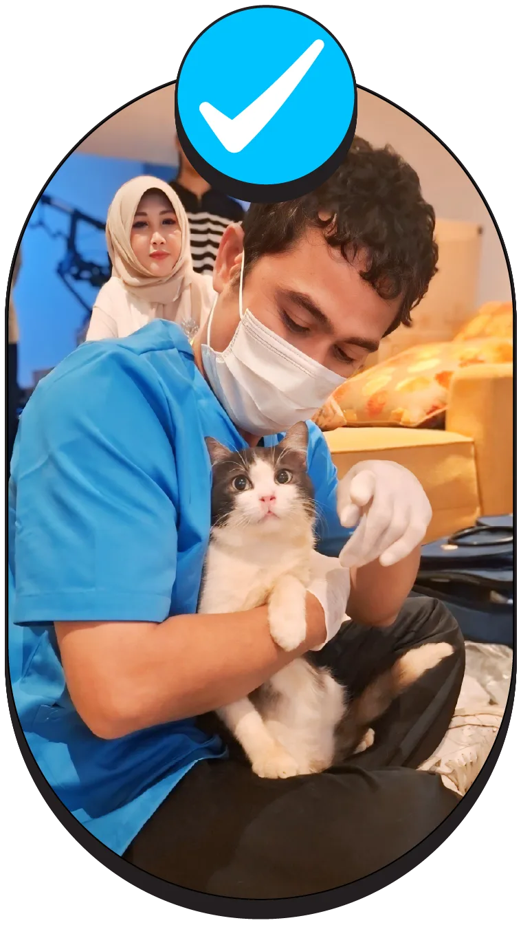 Tanpa perlu ke klinik, Dokter Hewan dan Paramedis dari PVET yang sudah berpengalaman dan profesional, siap datang untuk vaksinasi anjing dan kucingmu di rumah dengan aman, nyaman, dan steril.